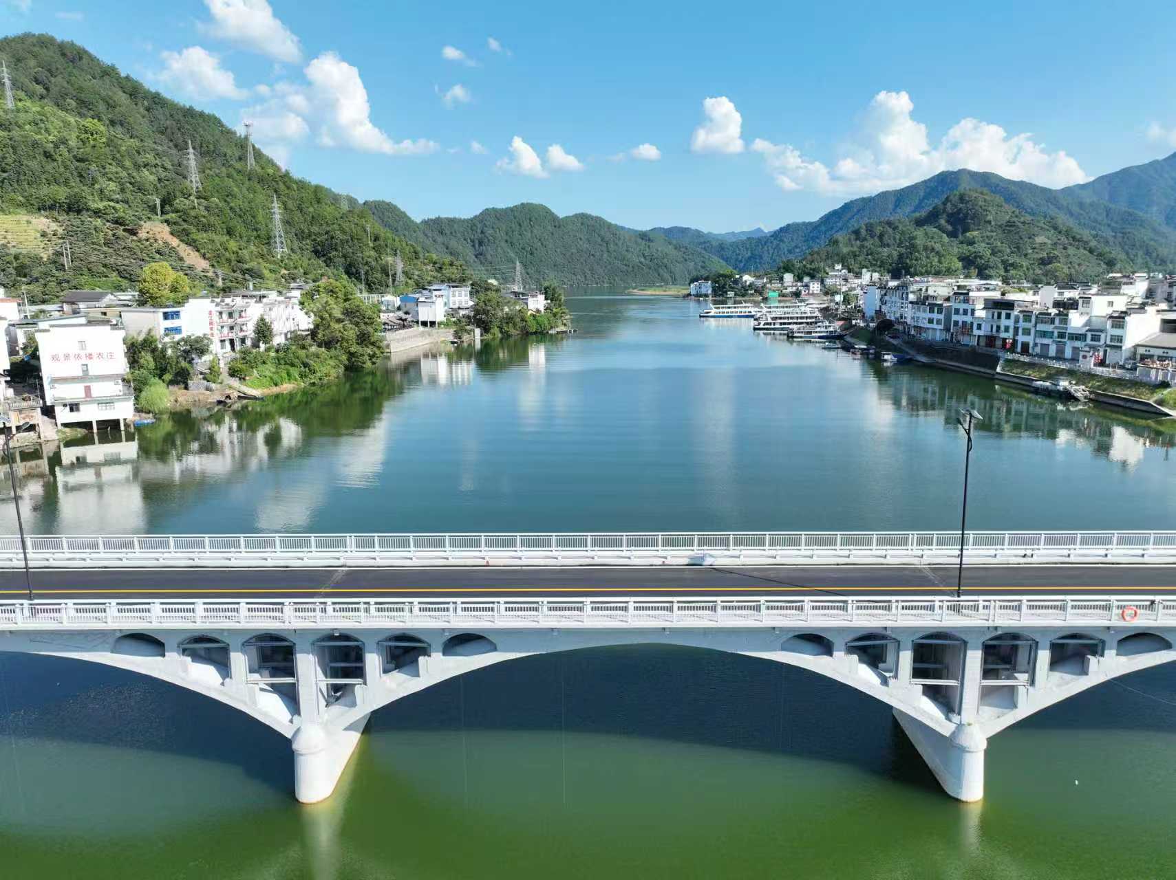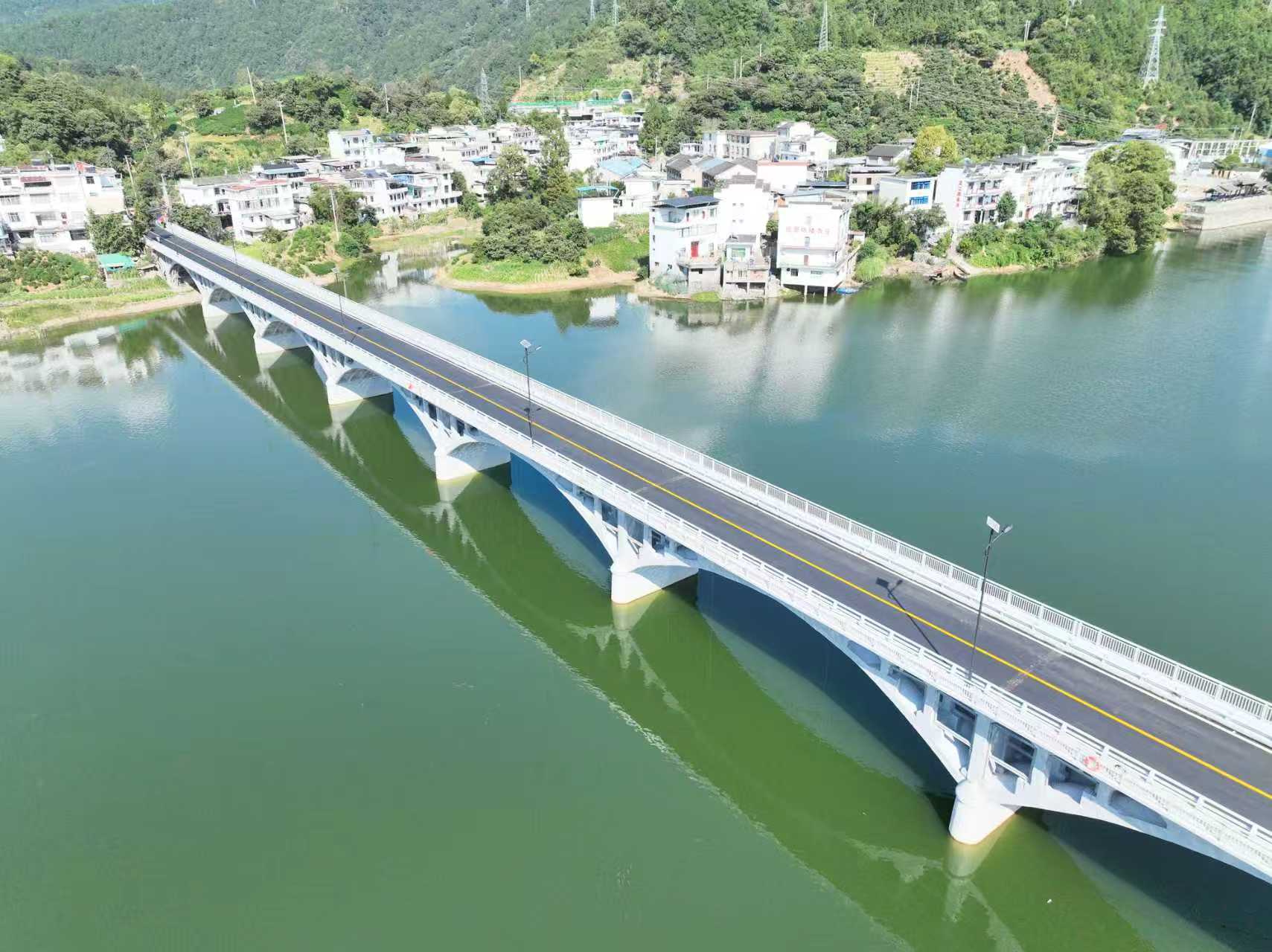 深渡桥位于歙县S348街王路上,桥梁为11跨30米钢筋混凝土双曲拱桥,桥梁全宽10米,全长390米。本次实施对老桥进行维修加固处理,主要施工内容包含全桥混凝土裂缝、缺损、漏筋修复;腹拱圈增设型钢衬拱加固;拆除重建桥面系及人行道;全桥进行耐久性防护:桥梁两侧接线修复等。